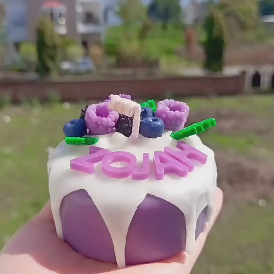 Bring a burst of sweet fun to your space with the Blueberry Cake inspired dessert Candle!