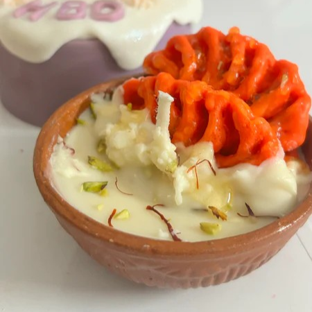 Indulge in the sweet, velvety aroma of Imarti Rabri, now in a candle!